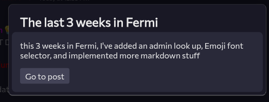 If you guys have anything you'd like to see feel free to open an issue or say your ideas in the Fermi Spacebar guild or even the Spacebar Discord Server