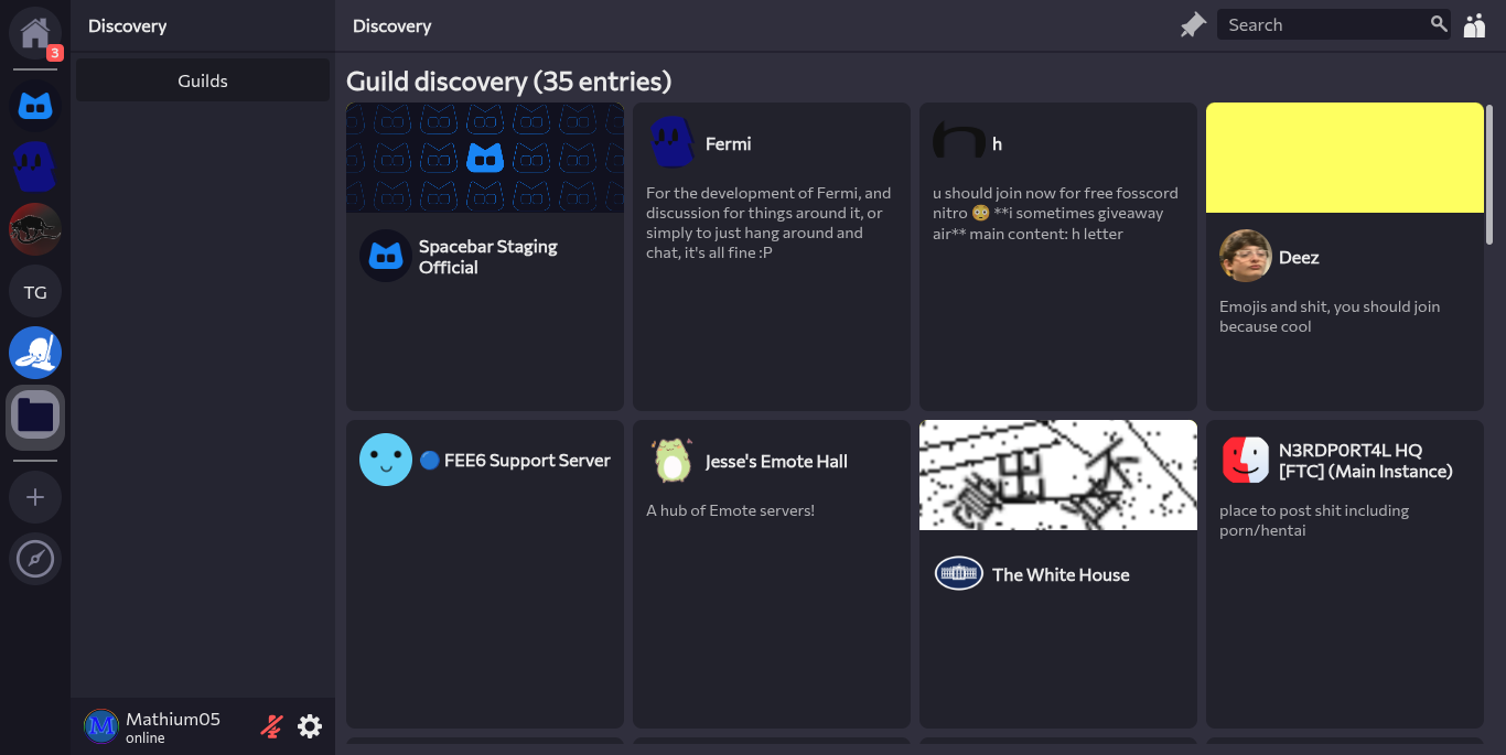 If you guys have anything you'd like to see feel free to open an issue or say your ideas in the Fermi Spacebar guild or even the Spacebar Discord Server